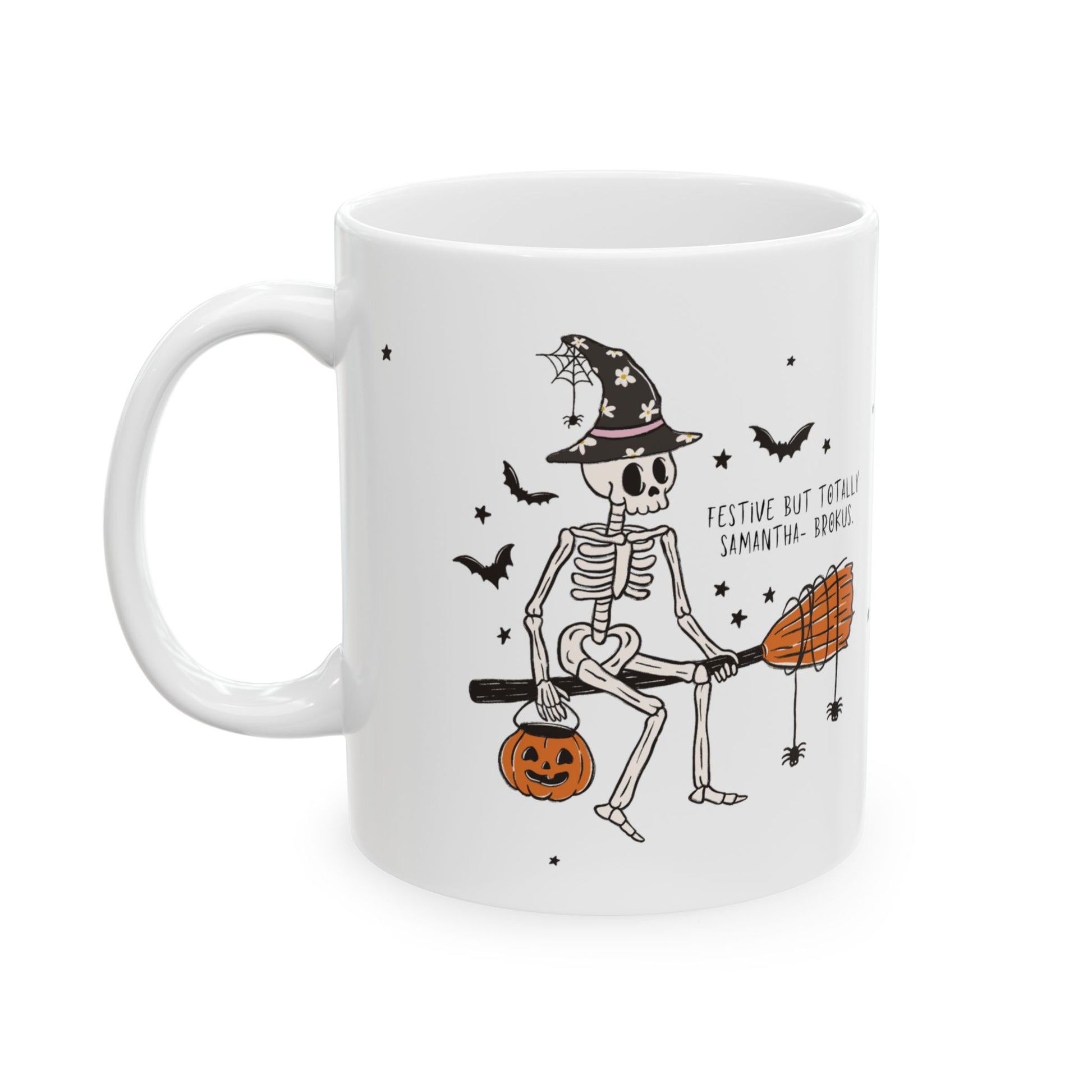 Custom Halloween Mug with Skeleton Witch | Funny Coffee Mug for Adulting Humor – Personalized Hocus Brocus