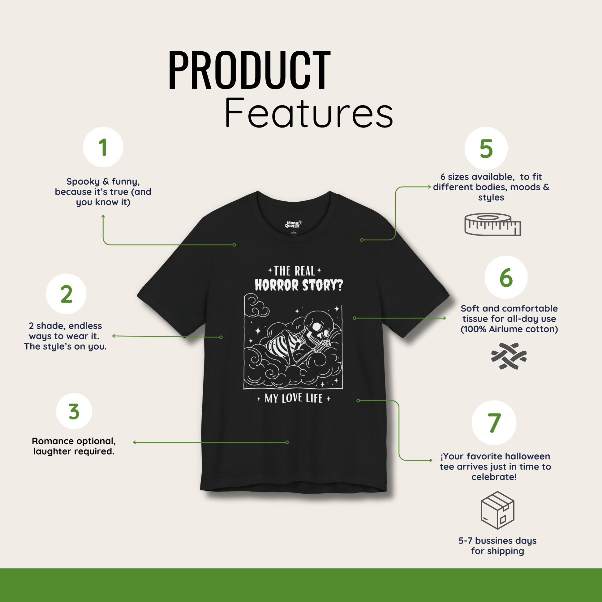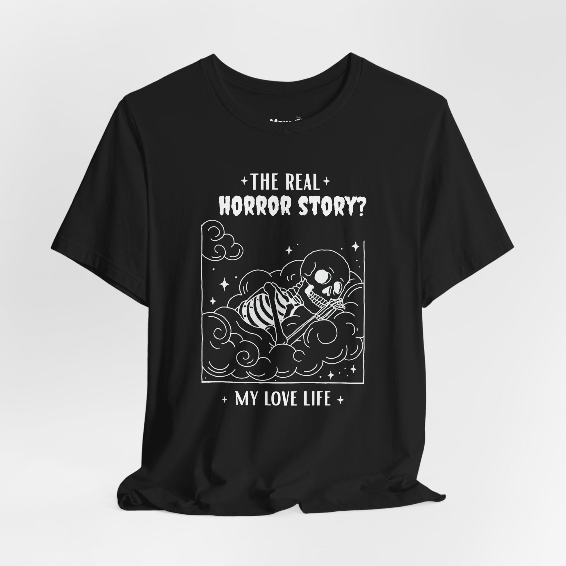 Funny Skeleton Halloween T-Shirt | Adulting Humor Tee – The Real Horror: My Love Life