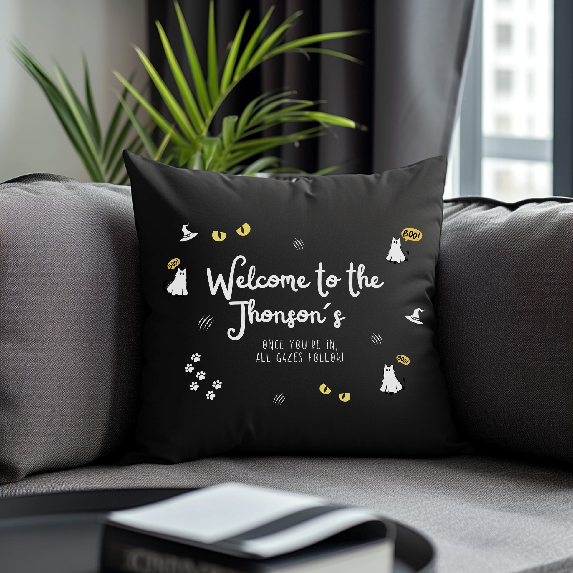 Haunted House Cat Pillow Cover | Funny and Personalized Halloween Decor for Cat Parents – The Watchful Feline